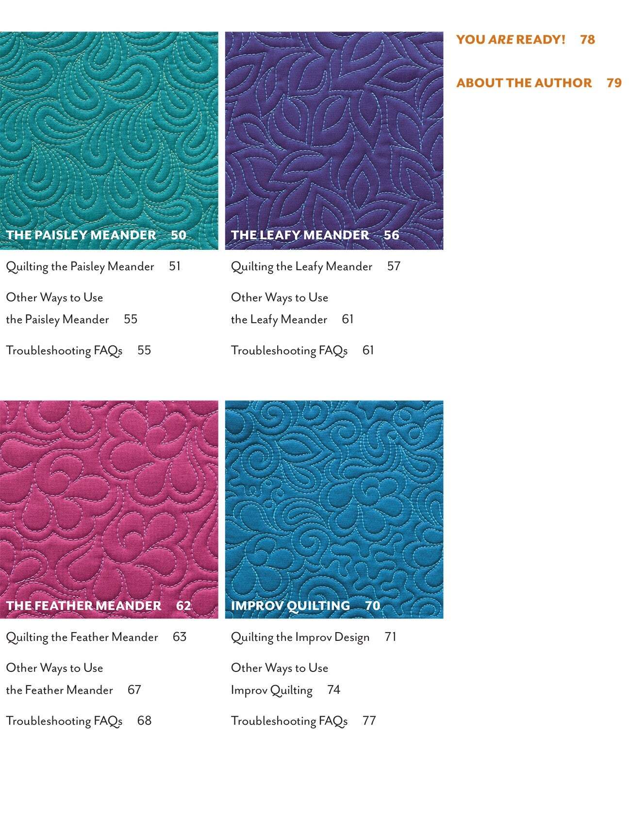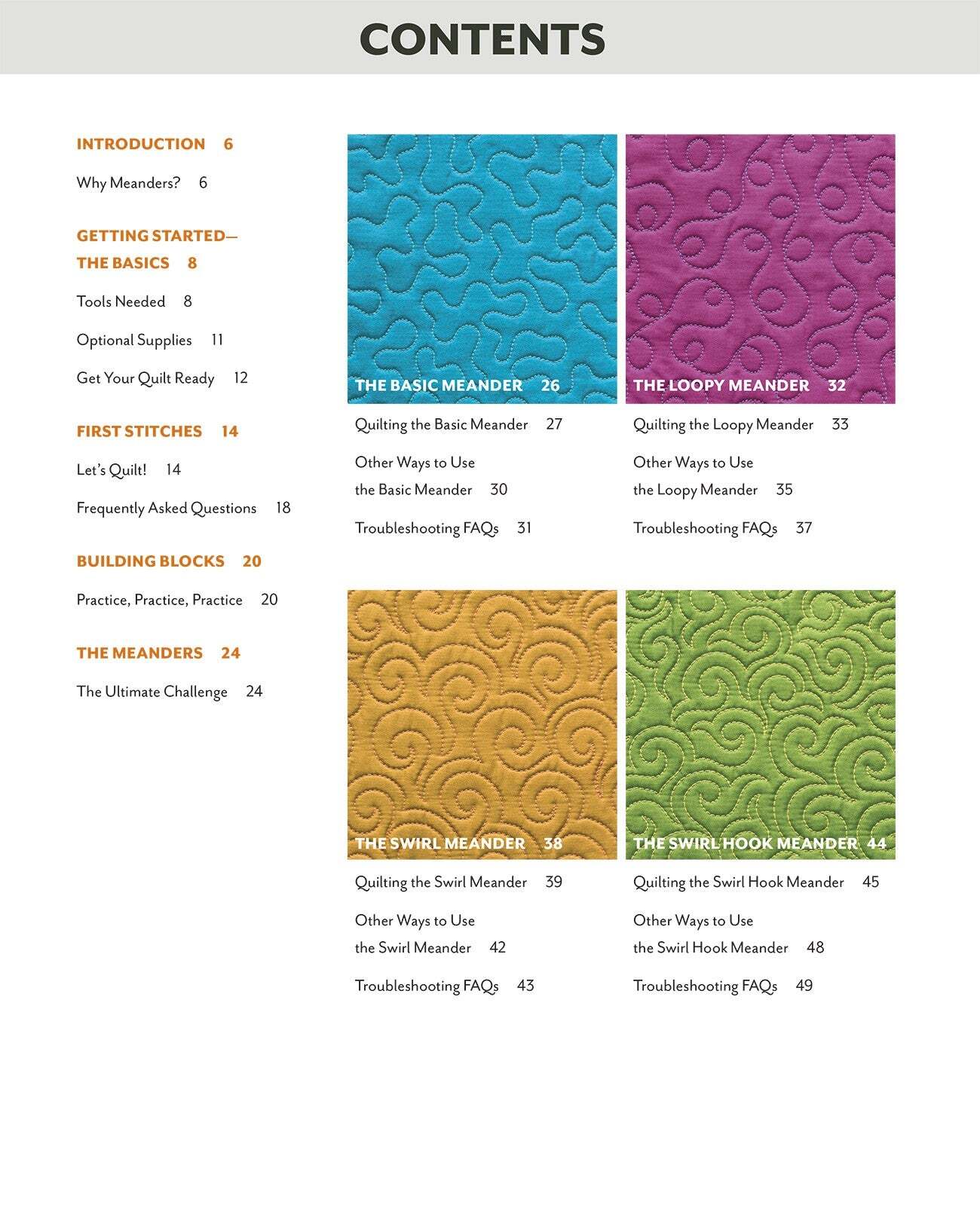 Turn the corner to free-motion success with a meandering makeover! Best-selling author Angela Walters shows you that free-motion machine quilting doesn't have to be scary - with a couple designs in your pocket, you can finish almost any quilt on your home machine and enjoy the process. Practice 8 meandering stitches for beginners plus unique modifications for each, with step-by-step visuals and quilted samples. Improve your free-motion quilting, disguise mistakes, and transition between designs with ease.