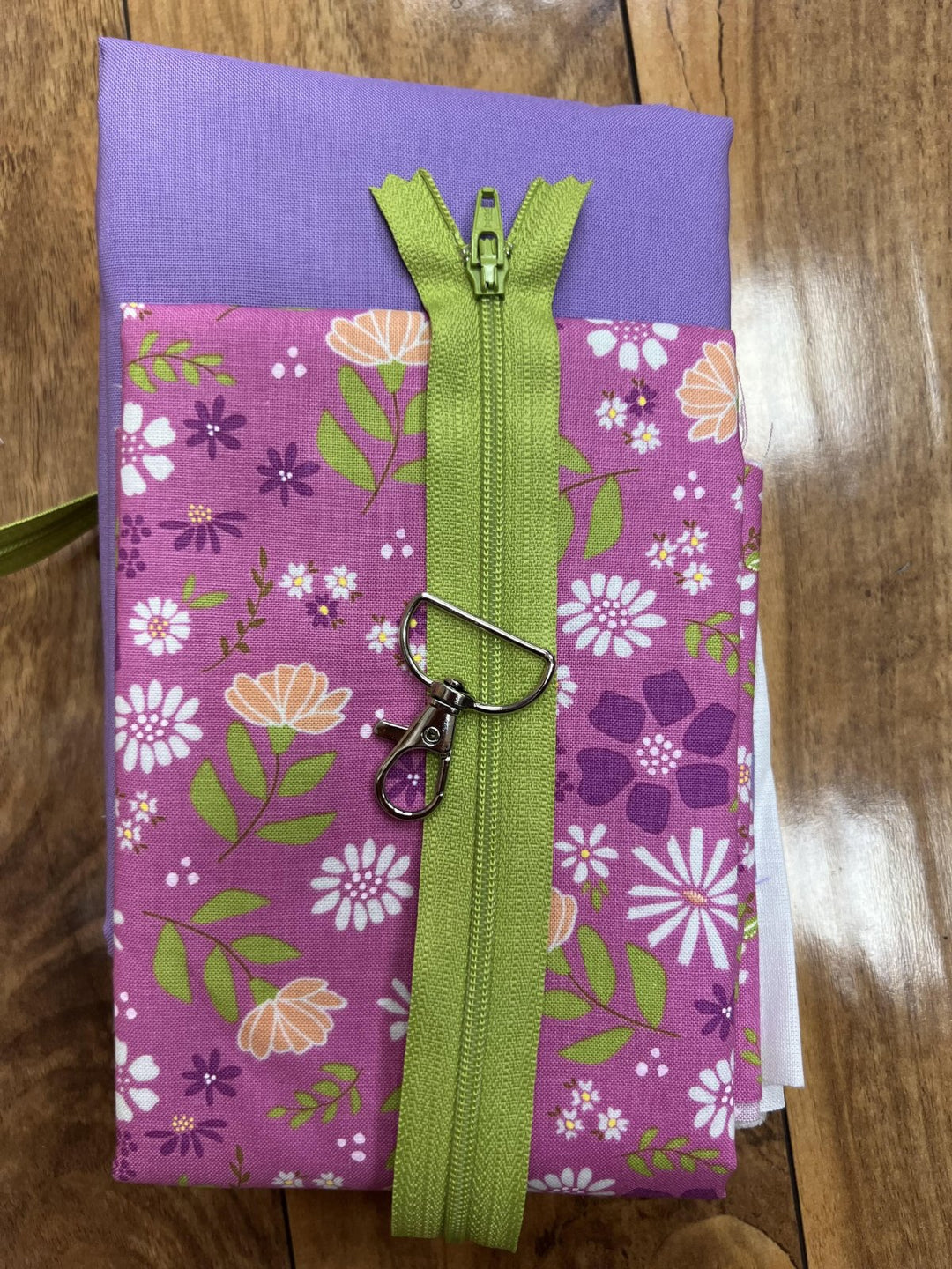 Quick Zip Bag - PATTERN NOT INCLUDED - Grey Floral with Pink band and zipper