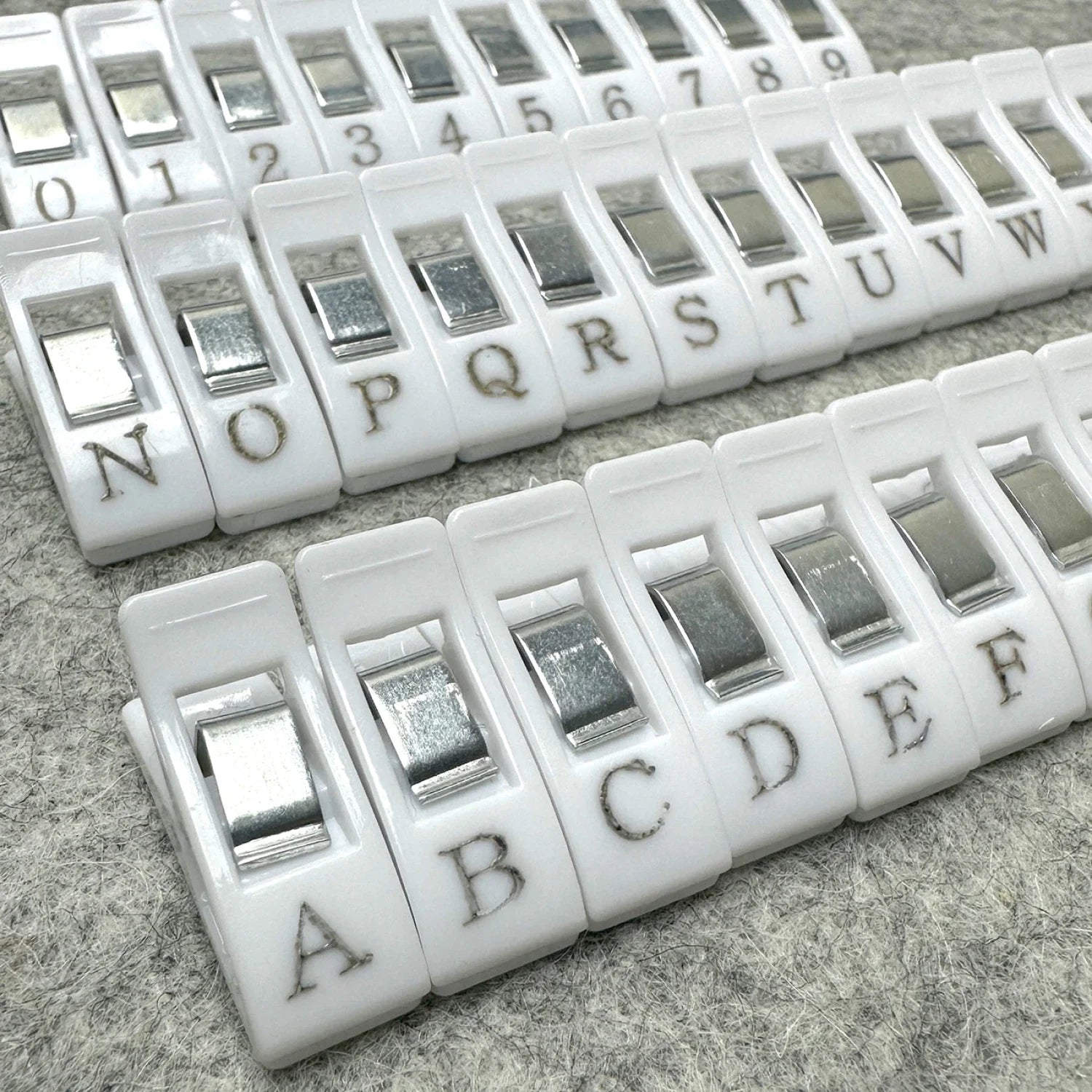 Great for embroidery projects when you don’t want to hoop the fabric, you can clip the fabric to the stabilizer or the hoop itself. They are 36 clips each engraved with a letter or number in the 1" size. Available in Black and now in WHITE!