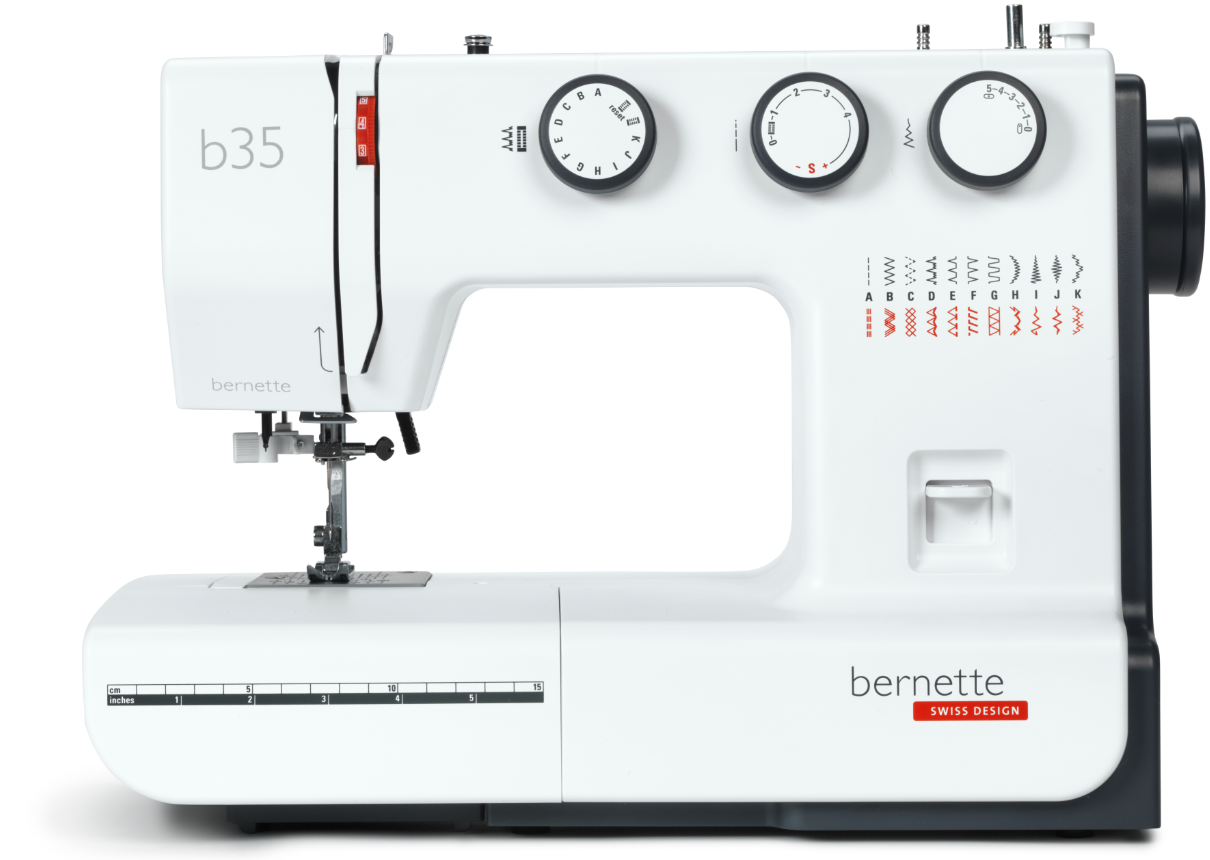 The bernette 35 is a mechanical sewing machine with no computerized controls. The width, length and pattern of the stitch is easily set by turning the three knobs. The tension can be adjusted during sewing, using an easily accessible wheel. The bernette 35 also has an automatic, 1-step buttonhole function, which is quick and easy to use. With a total of 23 stitches, including both utility and decorative stitches, you can bring your creative ideas to fruition quickly, easily and with excellent stitch quality. The bernette 35 includes seven snap-on presser feet.
