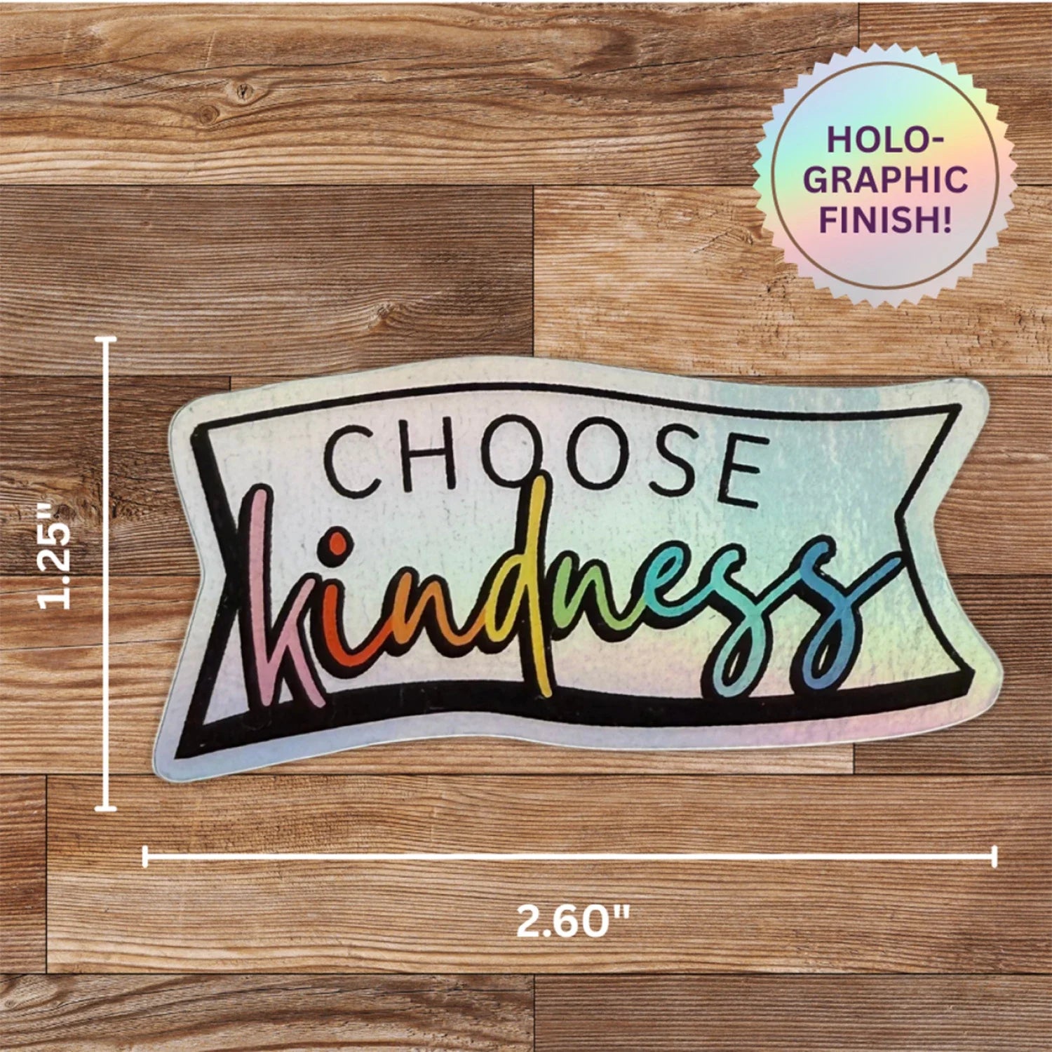 Spread positivity with our Choose Kindness holographic Sticker! This vibrant, eye-catching design shines with a rainbow finish, reminding you and those around you to lead with kindness. Perfect for water bottles, laptops, notebooks, and more, this durable sticker adds a touch of inspiration wherever you place it. A great gift for makers, creatives, and anyone who believes in the power of kindness!