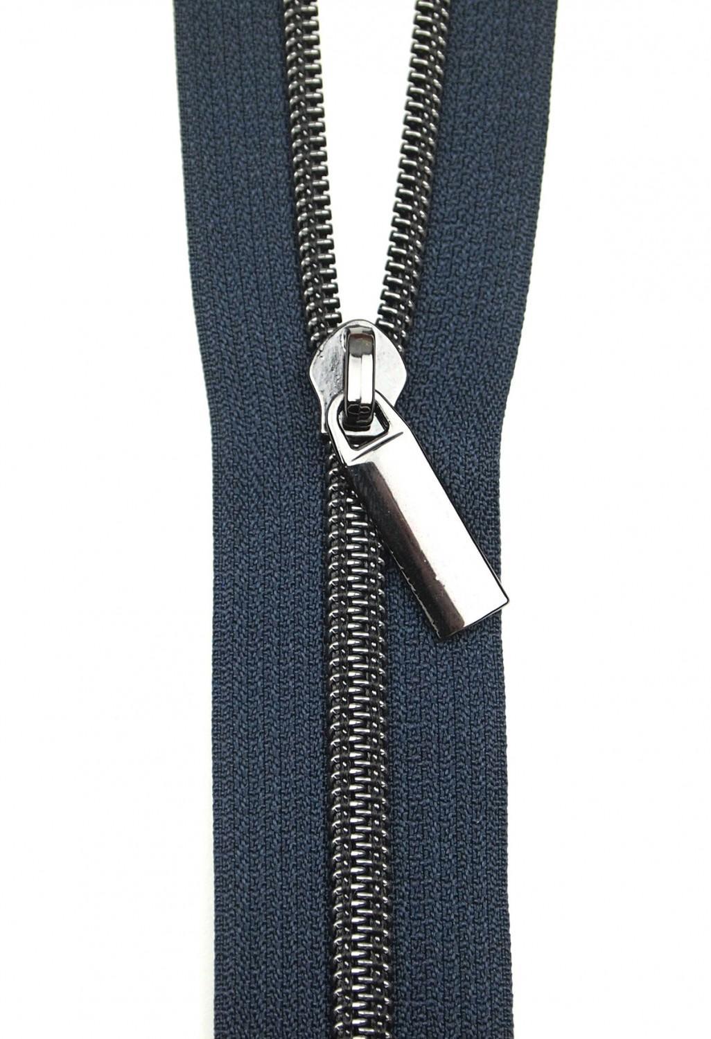 Zipper 3 Yards with 9 pulls - Sallie Tomato - Navy #5 Nylon Gunmetal Coil