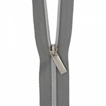 Zipper 3 Yards with 9 pulls - Sallie Tomato - Grey #3 Nylon Nickel Coil