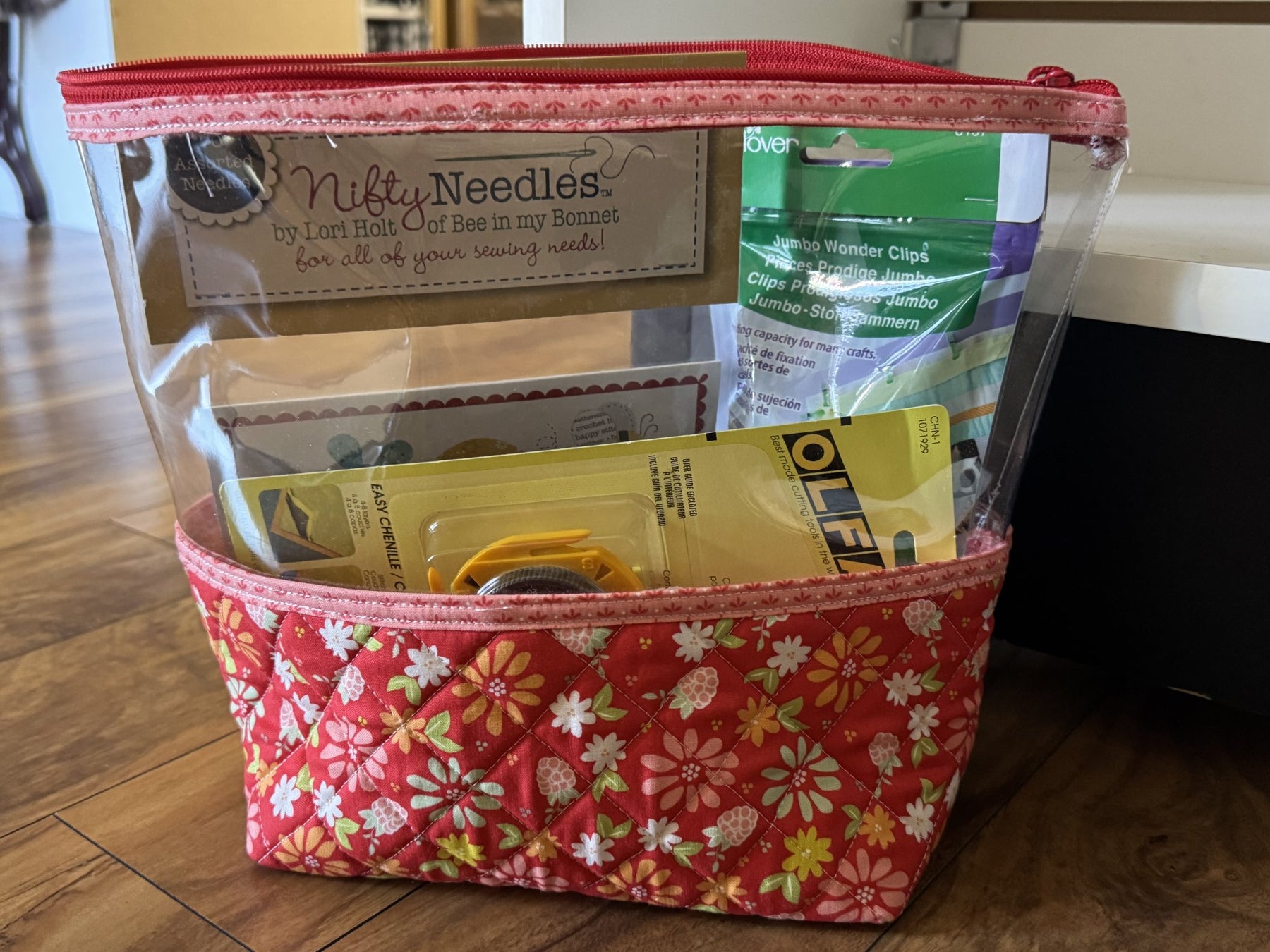 Kit Includes: Fabric for inside and out, Zipper, Vinyl, and soft & stable to make ONE X-large bag