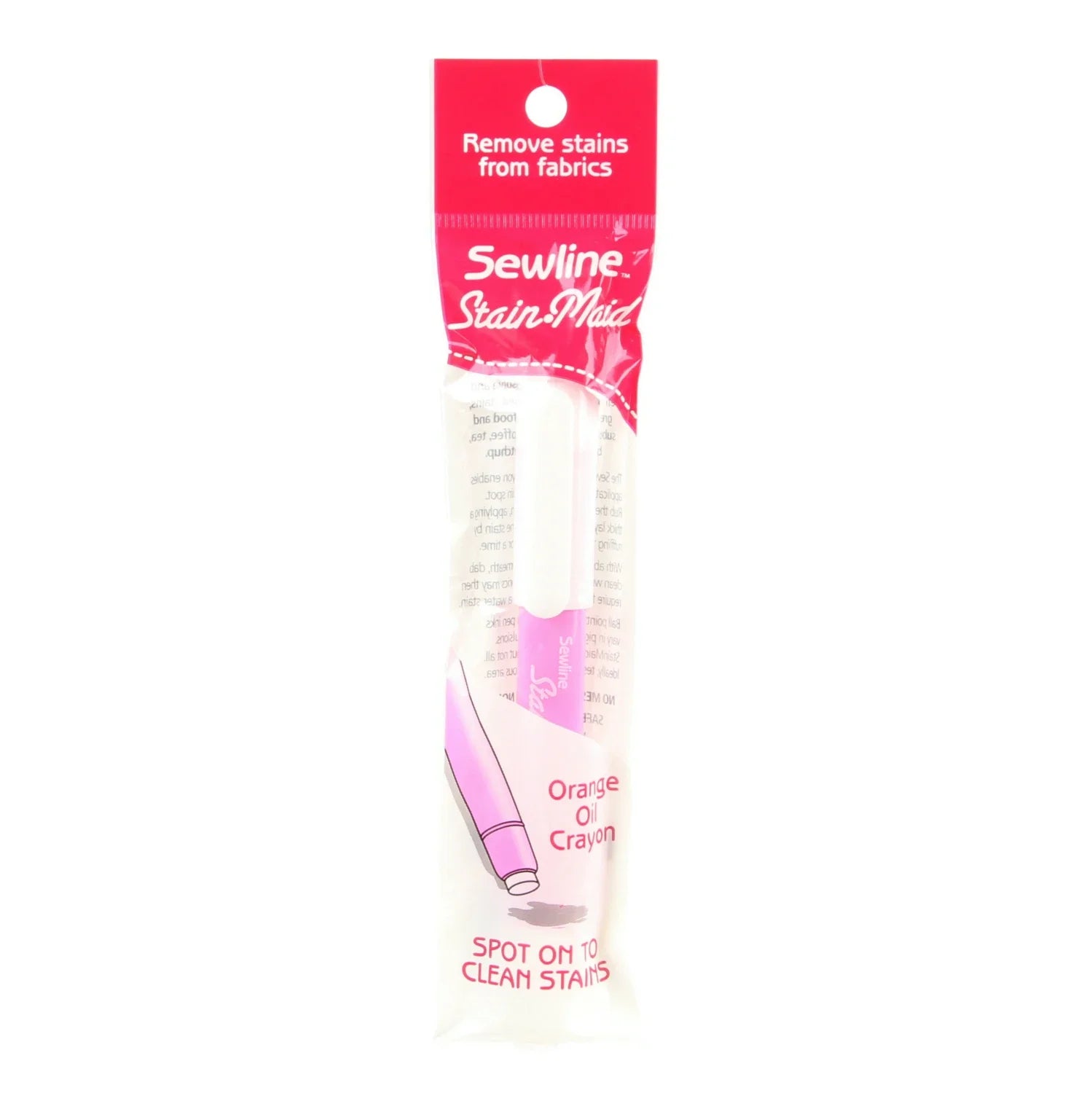 Stain Maid is a blend of orange oil and natural ingredients with a proven ability to dissolve and effectively lift oil-based stains, grease, inks, pencil, food and substances such as coffee, tea, blood, lipstick and ketchup. The Sewline Stain Maid crayon enable application right on the stain spot. No mess, no spill, non-toxic. Safe for all washables. Instructions included.
