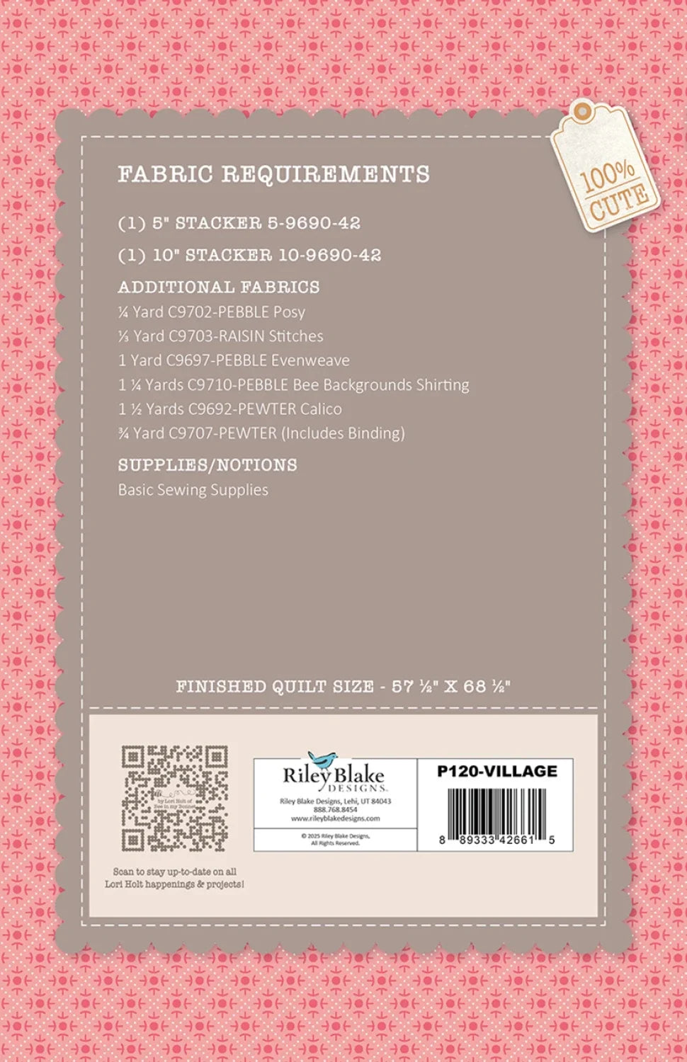 The Prim Village Quilt by Lori Holt of Bee in my Bonnet uses a 5" and 10" stacker and features pieced houses and churn dash blocks. Finished size is 57" x 68".
