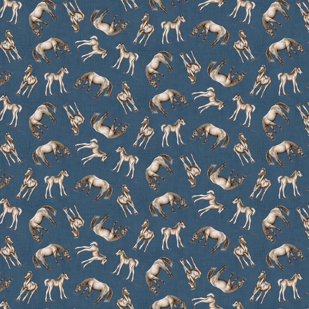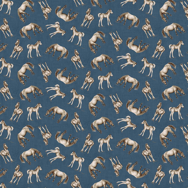 Henry Glass - Blue Horse Toile Allover - Cottonwood Stables