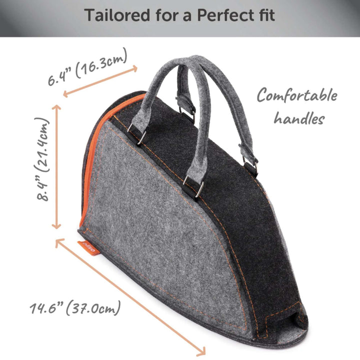 Made of strong, durable polyester felt, the carry bag provides stylish protection for your iron from dust, dirt, and scratches. It is practical for storage and travel to classes and retreats with its comfortable handles.